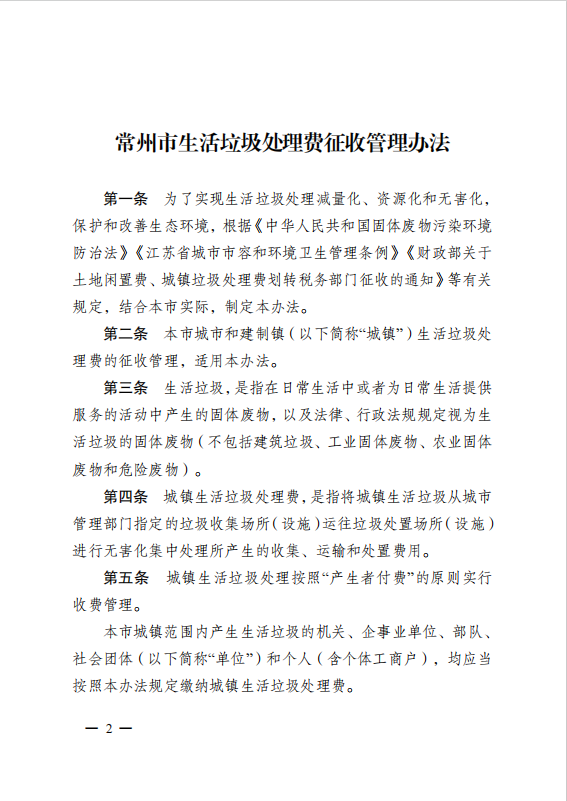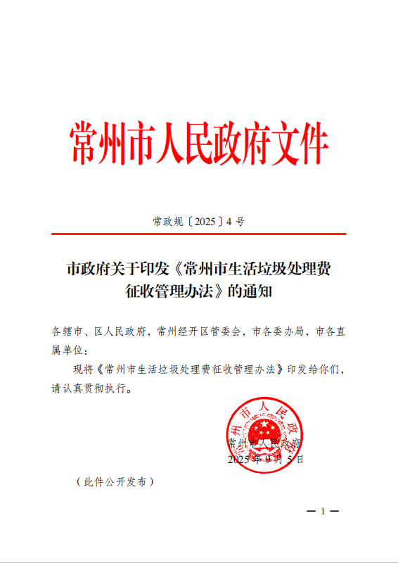 转发:《常州市生活垃圾处理费征收管理办法》(常政规[2025]4号)